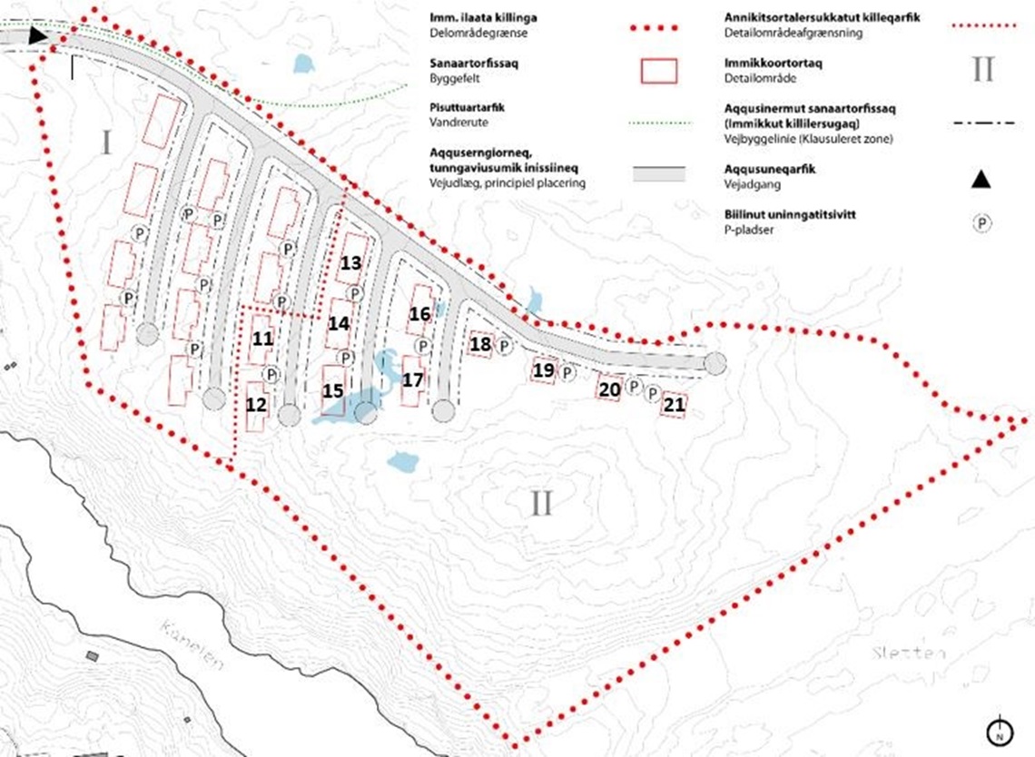 Der annonceres hermed 11 ledige byggefelter i delområde A32, Ilulissat, svarende til byggefelt 11-21 på kortet nedenfor.