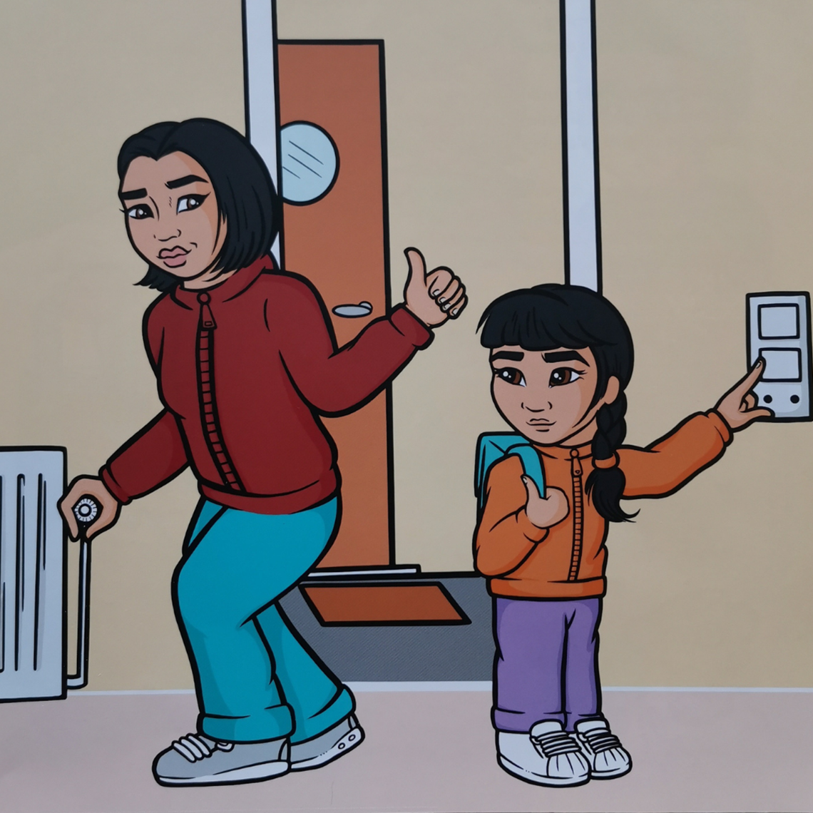 I fortællingen følger du Nuka og hendes familie i løbet af en dag, hvor de skal tage stilling til forskellige valg, der kan bidrage til en mere bæredygtig hverdag.