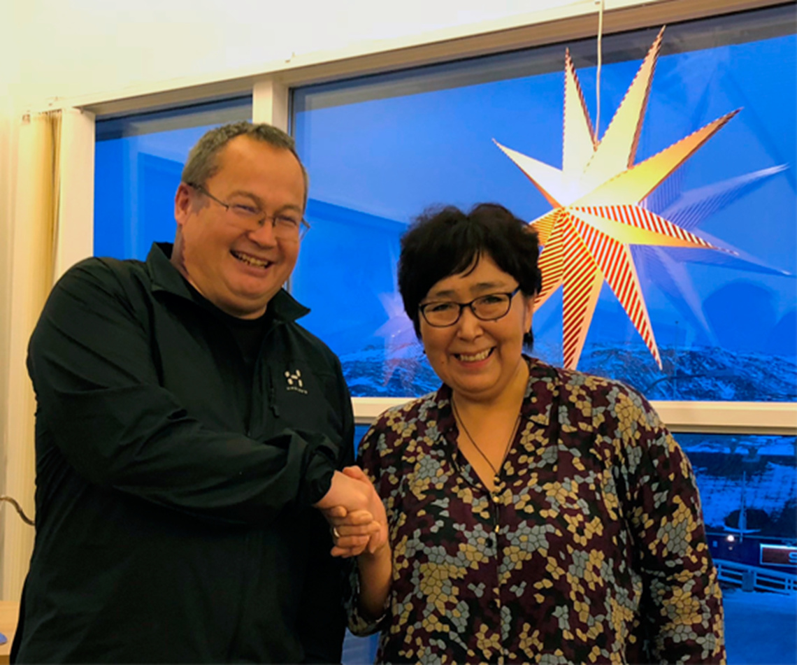 Avannaata Kommuniani Kommune Qeqertalimmilu borgmesterinngortussat Palle Jerimiassen aamma Ane Hansen ataatsimiinnerminni suleqatigiissutigisinnaasaminnik oqaloqatigiipput.