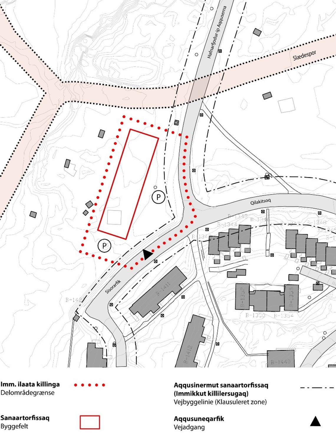 Du kan se placeringen og størrelsen på byggefeltet på kortet nedenfor eller finde det via NunaGIS.
