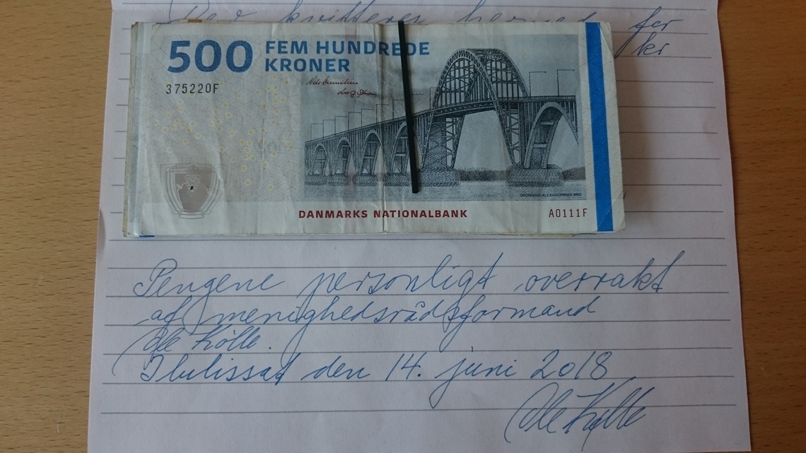Beløbet er kr. 3.600,- og skal tilgå projektet for ofrene.