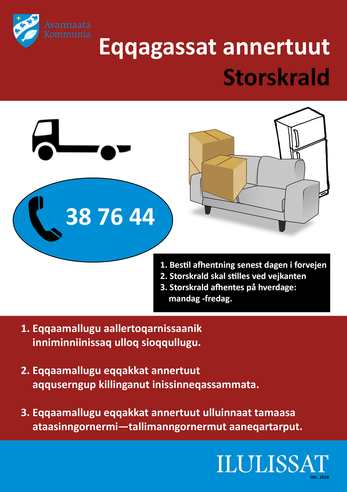 Eqqakkat annertuut aqquserngup killinganut inissikkit aneqarnissaannullu inniminniigit ulluinnarni ataa-tall. oq. 38 76 44-mut.
