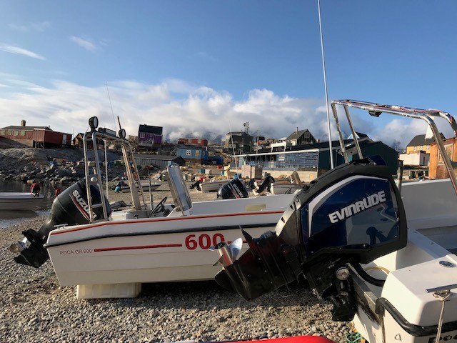 Længere oppe på stranden lå nogle Pocajoller med kæmpestore påhængsmotorer, som er magen til dem, som de forulykkede ejede. De enorme hestekræfter er nødvendige for bygdens driftige fiskere til at transportere fangsten over enorme strækninger. Samme hestekræfter kunne ikke strække til, da de nu omkomne fiskere forsøgte at slippe væk fra enorme bølger, der rullede efter isbræens kælven. Derfor flager bygdens fiskeanlæg også halvt som andre huse.