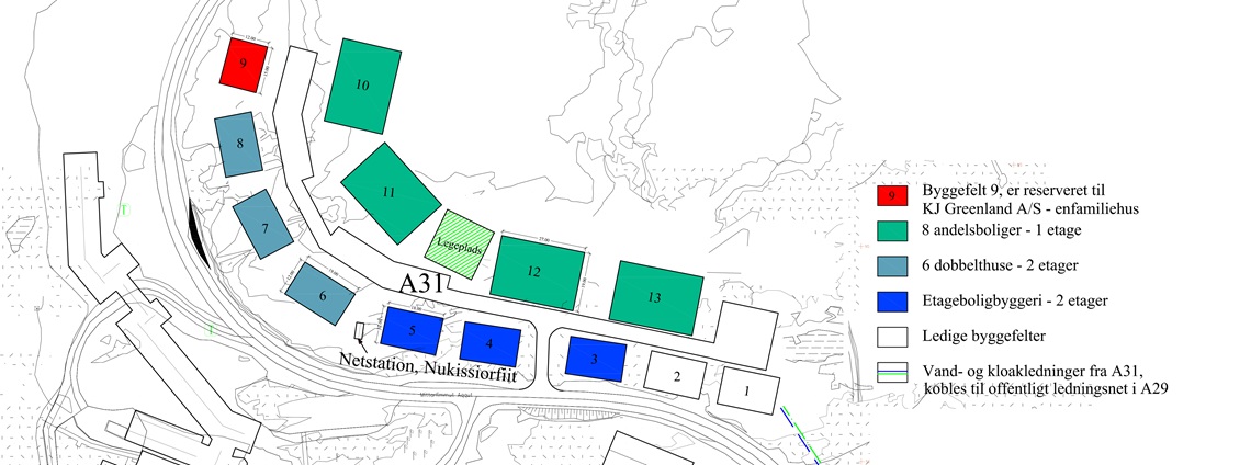 KJ Greenland ansøger om ændring af størrelse og antal på byggefelter i delområde A31, Ilulissat.