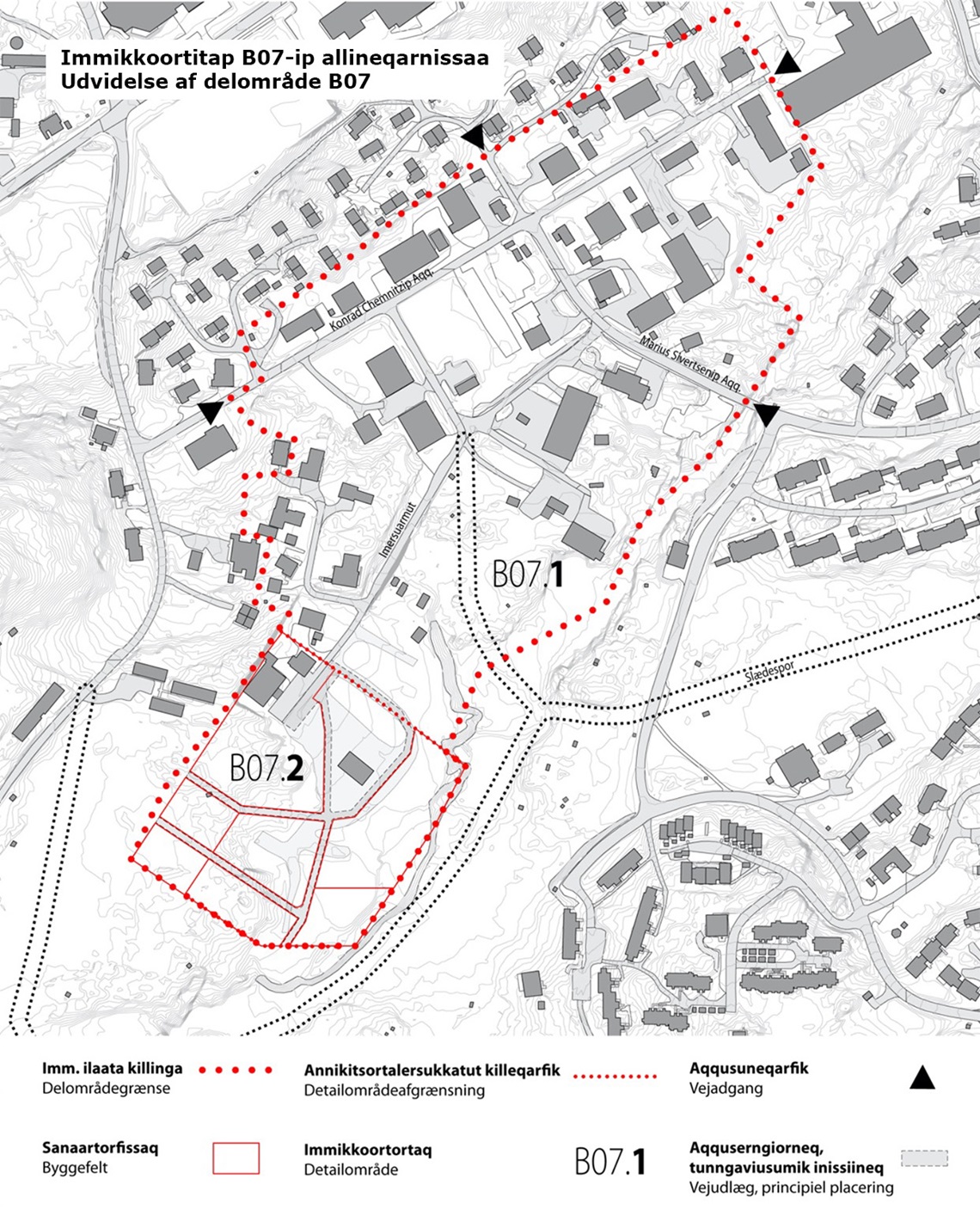 Kommunep pilersaarutaanut tapiliussap pingaarnertut siunertaraa inuussutissarsiorfeqarfiup allilernissaa, sumiiffiup immikkoortua B07. Alliliissut atorneqassaaq atortussanut ilioraavittut betonit katitigassanut sanaartornerpassuanni atorneqartussanut maannalu Ilulissani aallartisar-neqartunut. Taamaattumik KJ Greenland A/S-ip suliffeqarfia pioreersoq allilernissaanut pilersaa-rusiortoqarpoq sanaartorsinnaanermut periarfissiilluni inuussutissarsiornermut siunertalinnut, nunaminertat betonimut kueraaviit aammalu nunaminertat uninngatitsivissat sanaartornermi atortussanut, containerinut il.il. Nunaminertaq alliligassaq KJ Greenland A/S-imit inniminneer-neqareerpoq suliniummut tusarniutaasut aqqusaareerlugit.