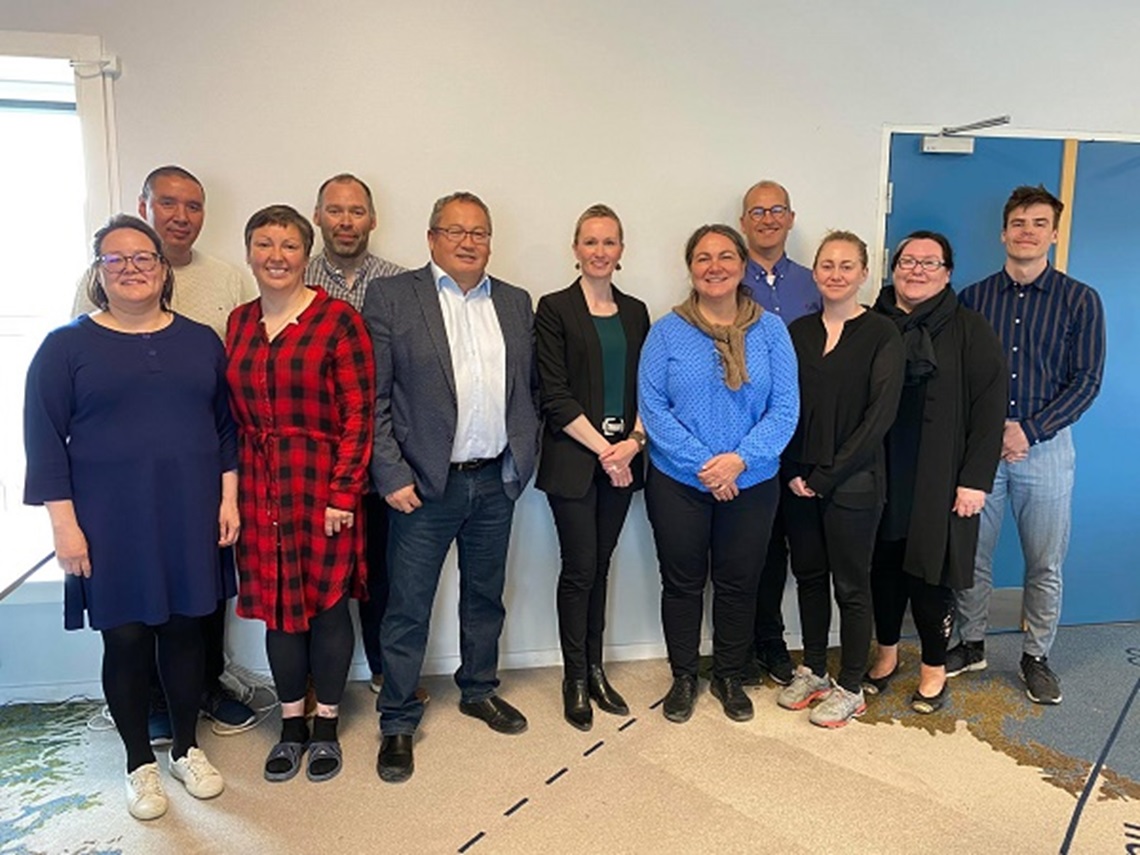 Naalakkersuisoq for Sundhed,Anna Wangenheim og borgmester Palle Jerimiassen sammen med deres embedsfolk.