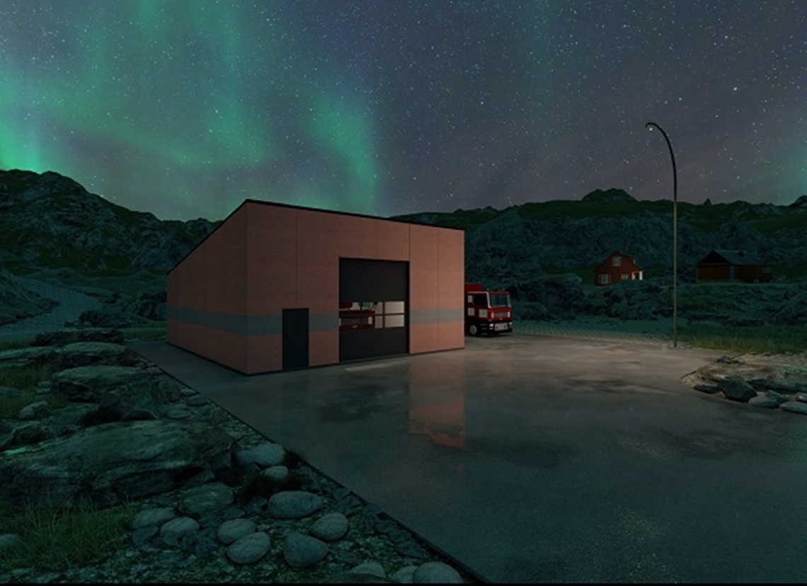 Forinden den nye brandstation bliver klargjort, har vi en midlertidig plads til nye store brandbil.