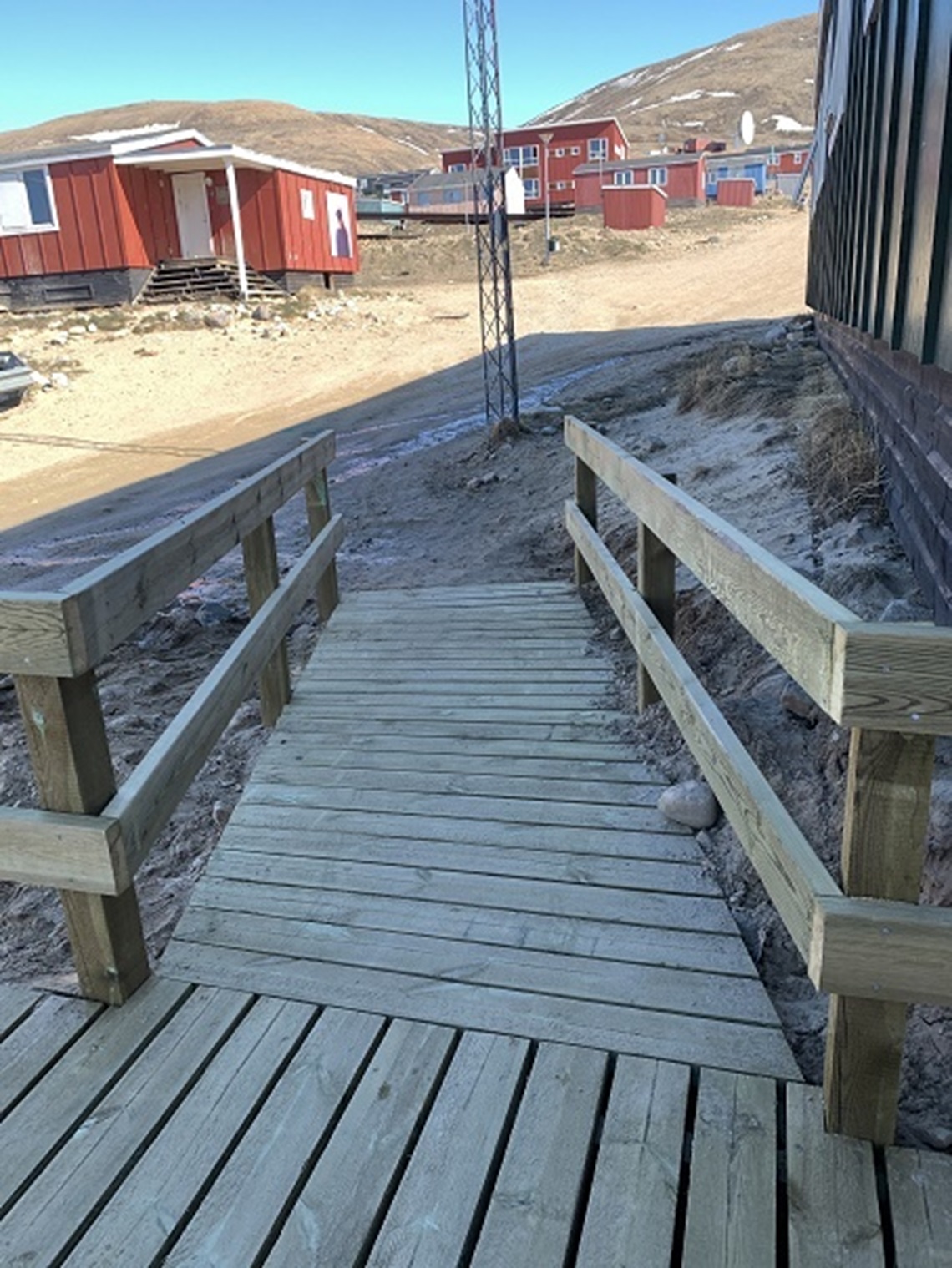 - Rampen har vakt glæde blandt kørestolsbrugerne, der nu kan komme ind i kommunekontoret og blive betjent. Der er en del brugere af rampen, som omfatter beboere i alderdomshjemmet, som bliver skubbet i kørestol samt en enkelt handicappet, der kører i en motoriseret kørestol, siger Panigpak Daorana, servicecenterleder i kommunekontoret i Qaanaaq.