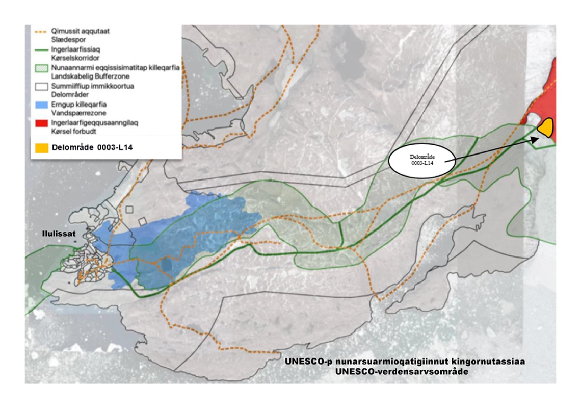 Delområdet ligger i Det åbne land, grændser op til Den landskabelige bufferzone for UNESCO ved Ilulissat isfjord og forventes derfor at kunde sees fra UNESCO-området. Ferdsel til / fra området må ske inden for fastlagte kørselskorridorer på vinteren med snescooter/ hundeslæde eller på opmerkede vandreruter på sommeren, for at ivaretage den sårbare natur.
