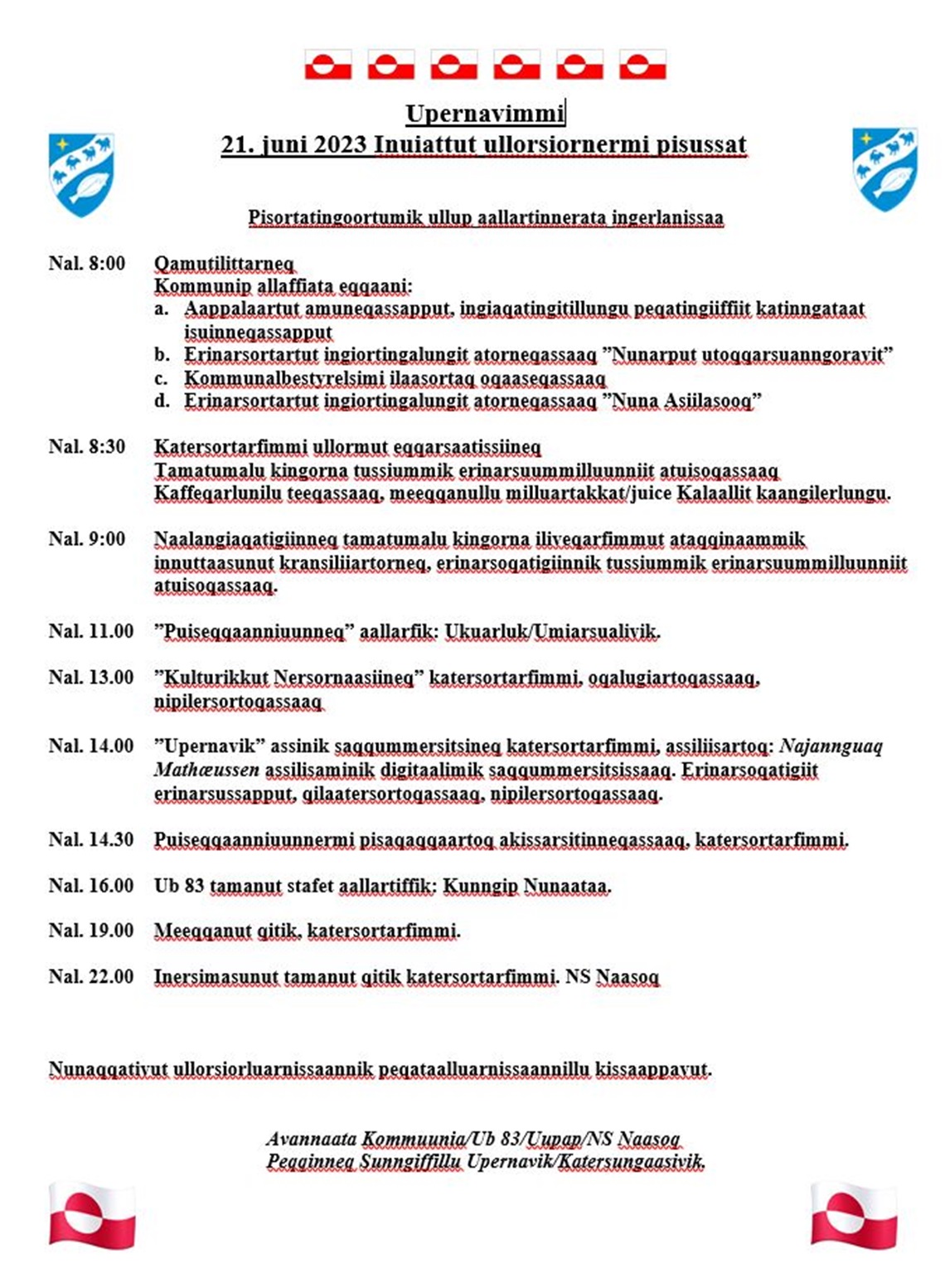 Se programmerne herunder - og følg også med på Avannaata Kommunias Facebook for mulige ændringer