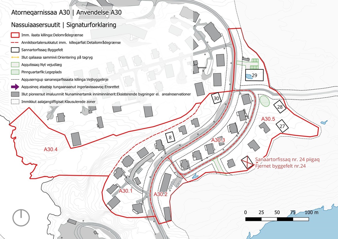 Tunngaviusumi pilersaarummi immikkoortoq 1200-A30-mi annikitsumik allannguisoqassooq. Sanaar-torfissaq nr. 24 pilersaarummiik peerneqassooq.