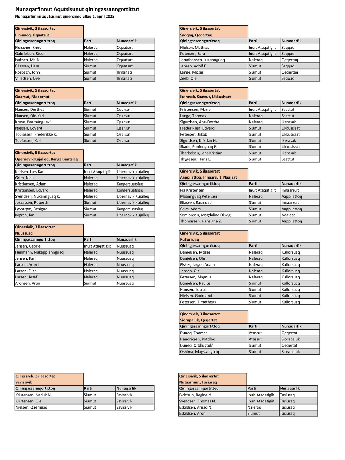 Nunaqarfiit siulersuisuinut qinigassanngortittut allattorsimaffigigallagaat uani aaneqarsinnaavoq: