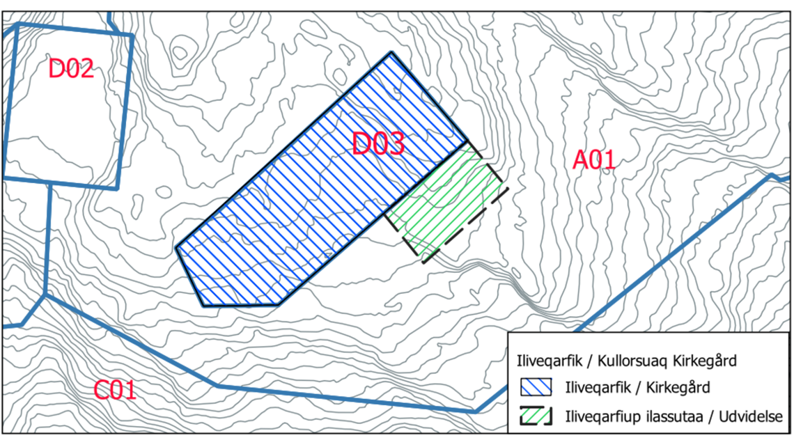 Siunnersuutip malitsigisaanik iliveqarfik 1.000 m²-inik allilerneqarsinnaavoq, taamaasillunilu nunaminertaq katillugit 5.888 m²-it missaaniilersinnaalluni. Kujammut kimmut alliliisoqassaaq, ullumikkullu immikkoortut ilaat inissianut atugassaritinneqartut eqqaaniissalluni.
