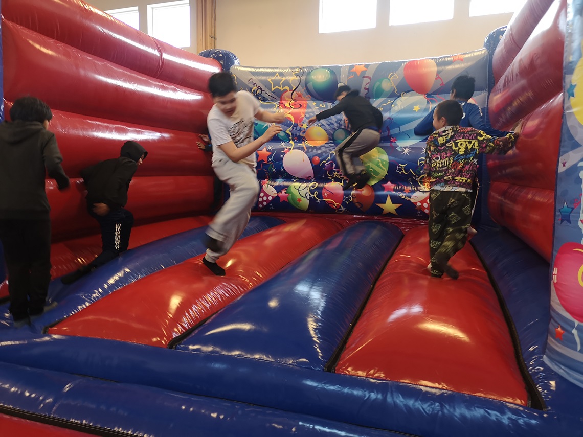 Minihallen blev hurtigt fyldt med latter, energi og glade råb, mens børnene hoppede, rutsjede og dystede på livet løs. De stod tålmodigt i kø for at få en tur mere – og ingen havde lyst til, at det skulle slutte, fortæller fritidsleder i Avannaata Kommunia Birgitta Kammann Danielsen, Kullorsuaq.