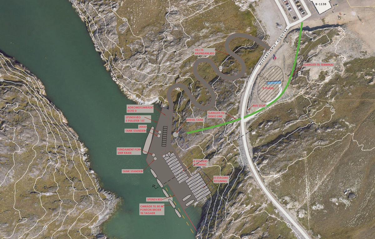 Projektet omfatter også adgangsvej, tankanlæg, kran, kontor og personaleboliger.